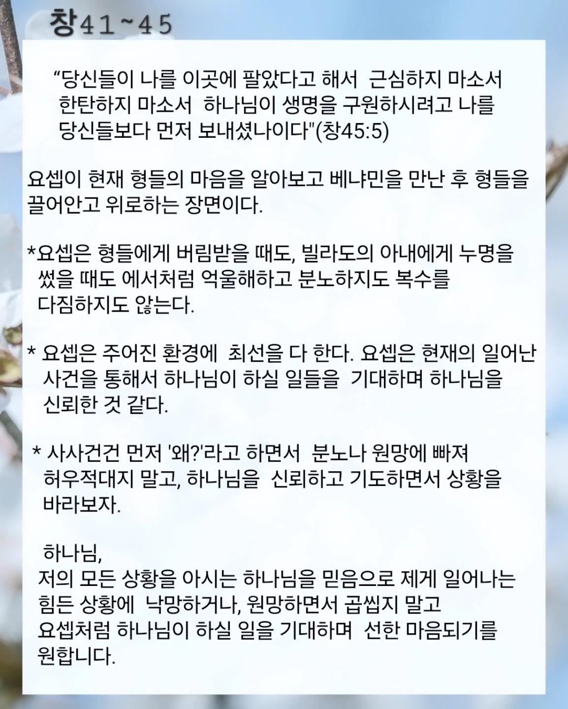 * 요셉은 주어진 환경을 바라보고 자신에게