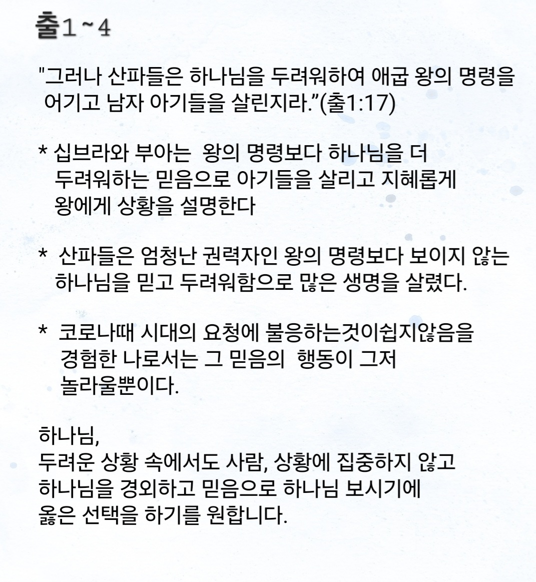 “그러나 산파들은 하나님을 두려워하여 애굽 왕의 명령을 어기고 남자 아기들을 살린지라.”
